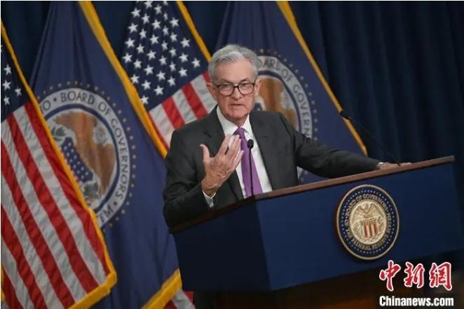 當(dāng)?shù)貢r間2023年7月26日,時任美國聯(lián)邦儲備委員會主席鮑威爾在華盛頓出席記者會。美國聯(lián)邦儲備委員會26日結(jié)束為期兩天的貨幣政策會議,宣布將聯(lián)邦基金利率目標(biāo)區(qū)間上調(diào)25個基點(diǎn)到5.25%~5.5%。中新社記者 陳孟統(tǒng) 攝