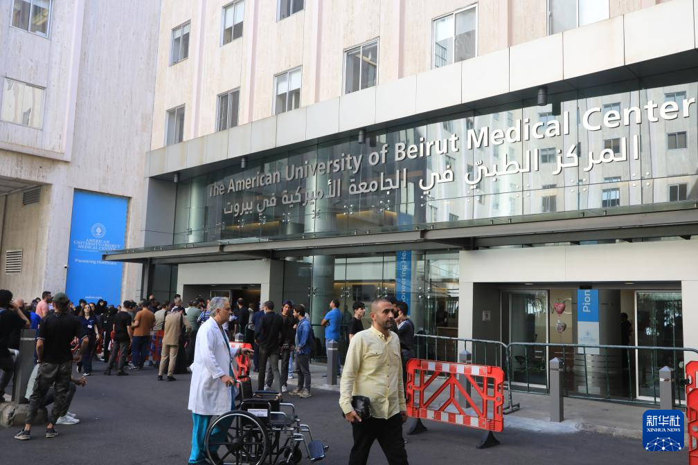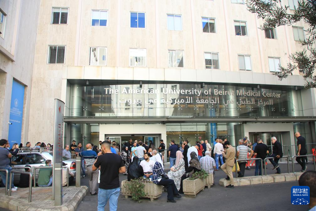 9月20日,在黎巴嫩首都貝魯特,人們聚集在貝魯特美國(guó)大學(xué)醫(yī)療中心門口。新華社記者 程帥朋 攝