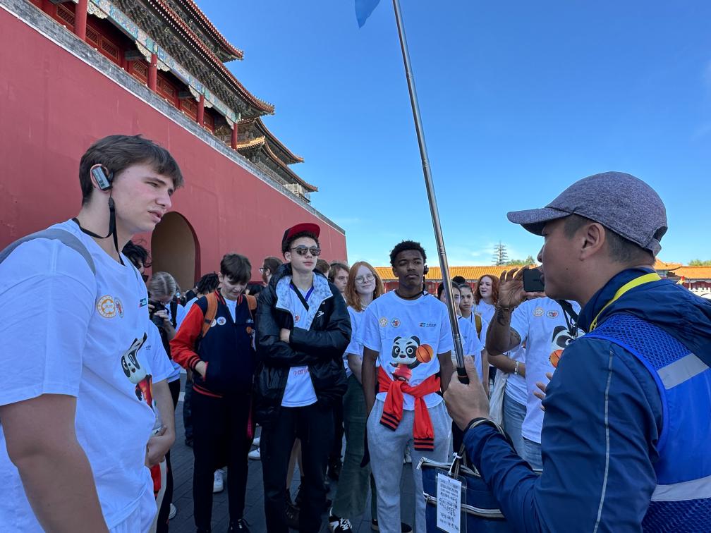 來自華盛頓州體育場(chǎng)中學(xué)的切斯·戈登讀過不少與中國(guó)相關(guān)的書籍。終于踏足北京故宮的他難掩興奮,一路緊隨導(dǎo)游,連連發(fā)問。當(dāng)?shù)弥偷钋暗你~龜、銅鶴腹為空心,放上香料后,煙自它們嘴里吐出,他驚訝地高呼:“這真是古代的高科技!”
