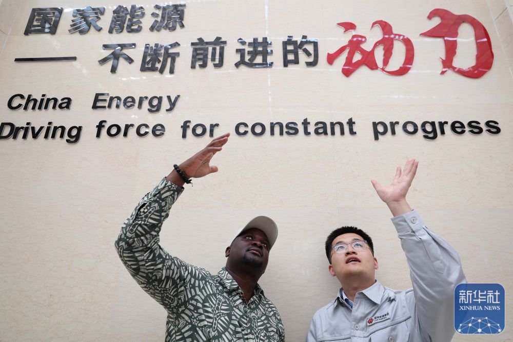 10月15日,與會嘉賓在國家能源集團(tuán)龍?jiān)赐卖敺履茉从邢薰緟⒃L時(shí)與工作人員交流。 新華社記者 李明 攝