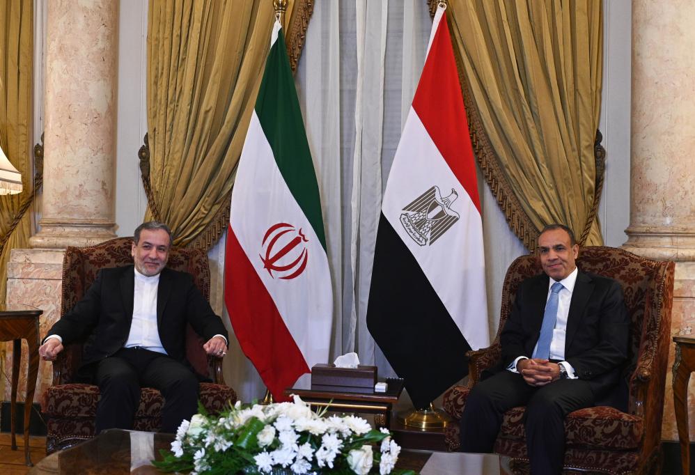 10月17日,埃及外長阿卜杜勒阿提(右)在首都開羅會(huì)見來訪的伊朗外長阿拉格齊。新華社發(fā)(賽義德·穆罕默德攝)