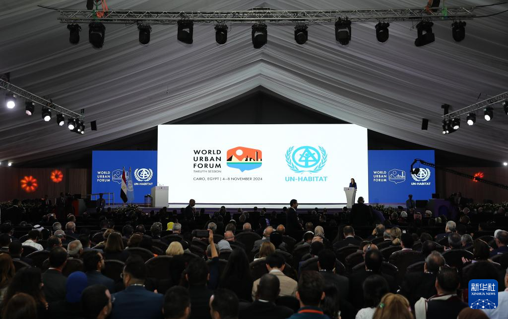 11月4日,人們在埃及首都開羅參加第12屆世界城市論壇開幕式。新華社發(fā)(艾哈邁德·戈馬攝)
