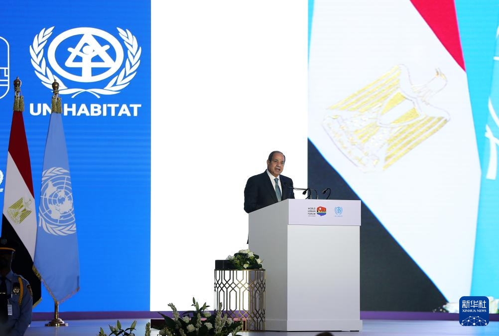 11月4日,在埃及首都開羅,埃及總統(tǒng)塞西在第12屆世界城市論壇開幕式上致辭。新華社記者 王東震 攝