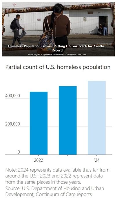 日前,美國《華爾街日報(bào)》對全美超過250個(gè)覆蓋城市和農(nóng)村地區(qū)的無家可歸者服務(wù)組織的數(shù)據(jù)進(jìn)行分析后發(fā)現(xiàn),上述地區(qū)無家可歸者的數(shù)量較去年同期增加了約10%。這一趨勢表明,美國今年無家可歸者人數(shù)可能會(huì)超過2023年估計(jì)的65.3萬人,這是自2007年有記錄以來的最高數(shù)字。