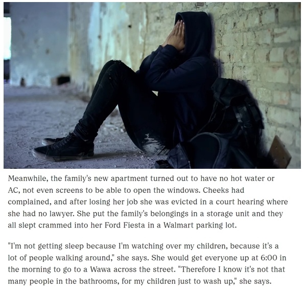 在弗吉尼亞州生活的奇克斯是一位獨(dú)自撫養(yǎng)四個(gè)孩子的母親。由于失業(yè)后無力負(fù)擔(dān)房租,她和四個(gè)孩子的臨時(shí)住房是一輛小轎車,這輛車長期停在一家超市的停車場里。