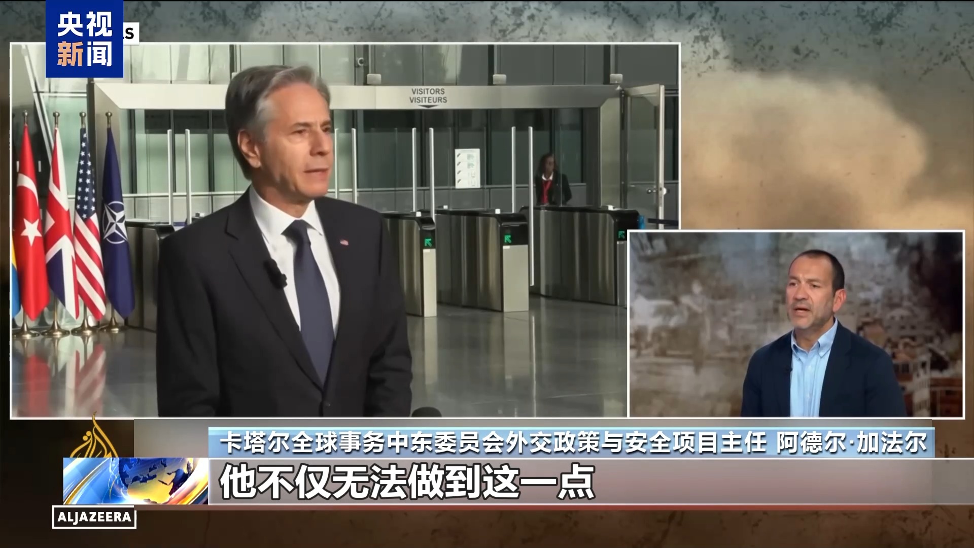 卡塔爾全球事務中東委員會外交政策與安全項目主任 阿德爾·加法爾:過去一年多布林肯已經去了中東至少11次,和中東國家領導人會面,他試圖推動以色列結束戰(zhàn)爭,但到目前為止,他不僅無法做到這一點,而且美國還在外交政策上偏袒以色列,不斷提供武器和資金支持。