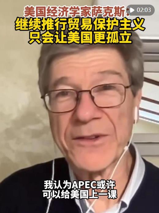 薩克斯表示,美國應(yīng)停止破壞性的貿(mào)易政策。美國慫恿其他國家停止與中國經(jīng)貿(mào)往來,但很多國家并不跟風。繼續(xù)推行貿(mào)易保護主義只會讓美國更孤立。(記者:鄭開君、熊茂伶、胡友松;視頻:鄭開君、刁慧琳)