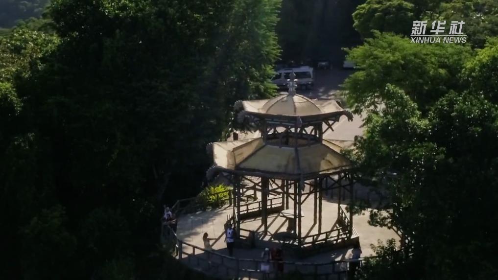 在科爾科瓦多山上的蒂茹卡國(guó)家公園里,有一座玲瓏別致的中式?jīng)鐾ぃ私秋w檐上雕刻著色彩艷麗的飛龍。這座涼亭是里約地方政府為表彰華工在巴西用中國(guó)茶籽培育茶樹的功績(jī)而修建。現(xiàn)在,中國(guó)亭已成為中巴兩國(guó)人民友誼的象征。