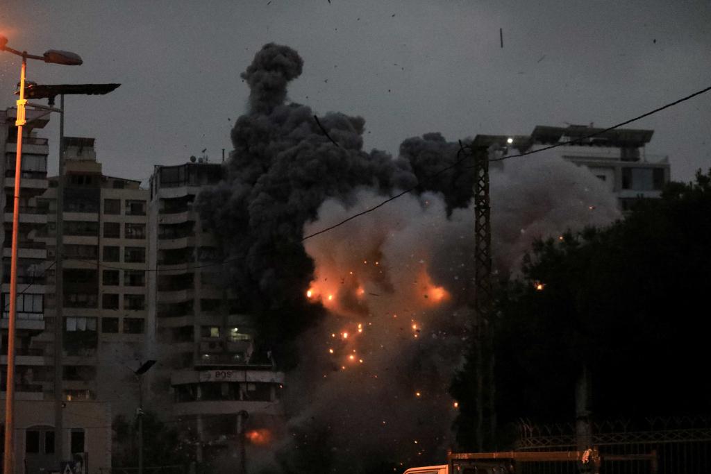 11月25日,在黎巴嫩首都貝魯特南郊,以軍空襲現(xiàn)場(chǎng)升起濃煙。新華社發(fā)