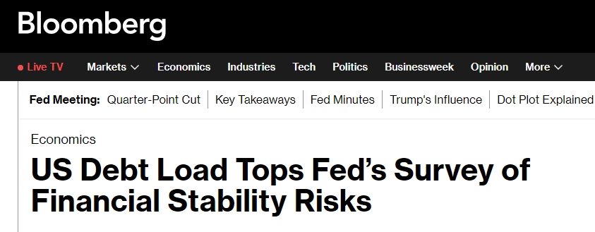 彭博社(Bloomberg)在報(bào)道中提到,美國政府的債務(wù)負(fù)擔(dān)現(xiàn)在被認(rèn)為是金融穩(wěn)定面臨的最大風(fēng)險(xiǎn),在美聯(lián)儲(chǔ)的一項(xiàng)調(diào)查中,其重要性超過了持續(xù)的通貨膨脹。逾半數(shù)受訪者(54%)認(rèn)為美國財(cái)政債務(wù)的可持續(xù)性是一個(gè)突出風(fēng)險(xiǎn),而半年前這一比例僅為40%。美聯(lián)儲(chǔ)的半年度金融穩(wěn)定報(bào)告寫道:“美國財(cái)政債務(wù)可持續(xù)性方面的擔(dān)憂位居榜首,其次是中東緊張局勢(shì)升級(jí)和政策的不確定性?!?/p>