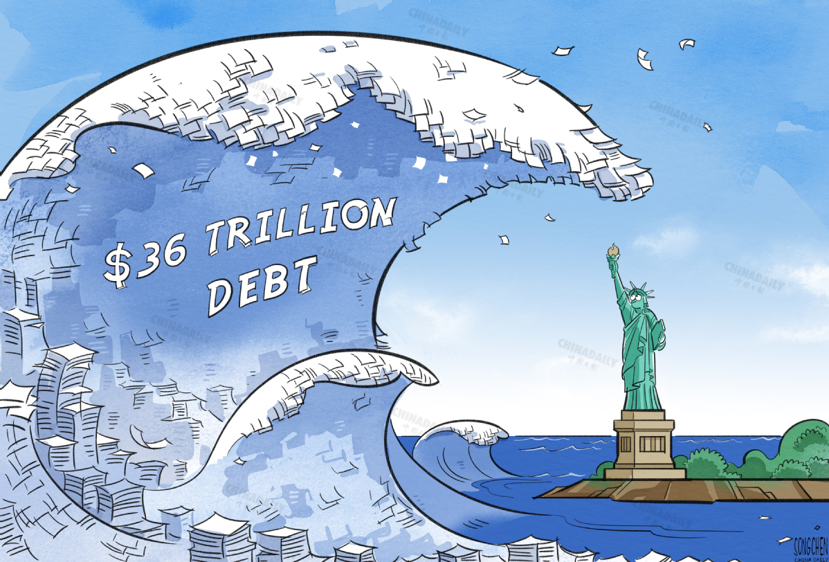 美國國債總額已突破36萬億美元,達(dá)到創(chuàng)紀(jì)錄的新高。(作者:中國日?qǐng)?bào) 宋晨)