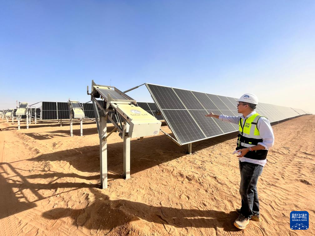 充沛的光照讓埃及具備得天獨(dú)厚的光伏發(fā)電條件。本班光伏產(chǎn)業(yè)園占地面積37平方公里,規(guī)劃建設(shè)40座太陽能發(fā)電廠,總裝機(jī)容量約2千兆瓦,目前已有32座發(fā)電廠建成并投入運(yùn)營。廣袤的撒哈拉沙漠中,高高架起的光伏板像棋盤格一樣鋪展開,從高處俯瞰猶如藍(lán)色海洋。光伏板跟隨太陽的位置調(diào)整角度,炙熱的陽光被源源不斷轉(zhuǎn)化為電力能源。