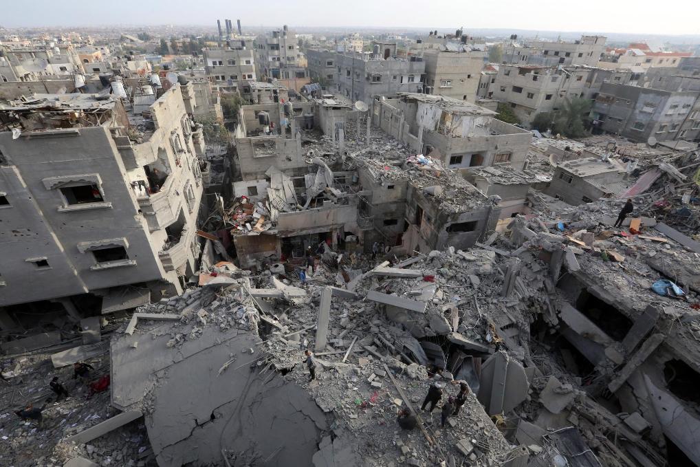 這是12月7日在加沙地帶中部努賽賴特難民營(yíng)拍攝的遭以軍轟炸后的建筑廢墟。新華社發(fā)(里澤克·阿卜杜勒賈瓦德攝)