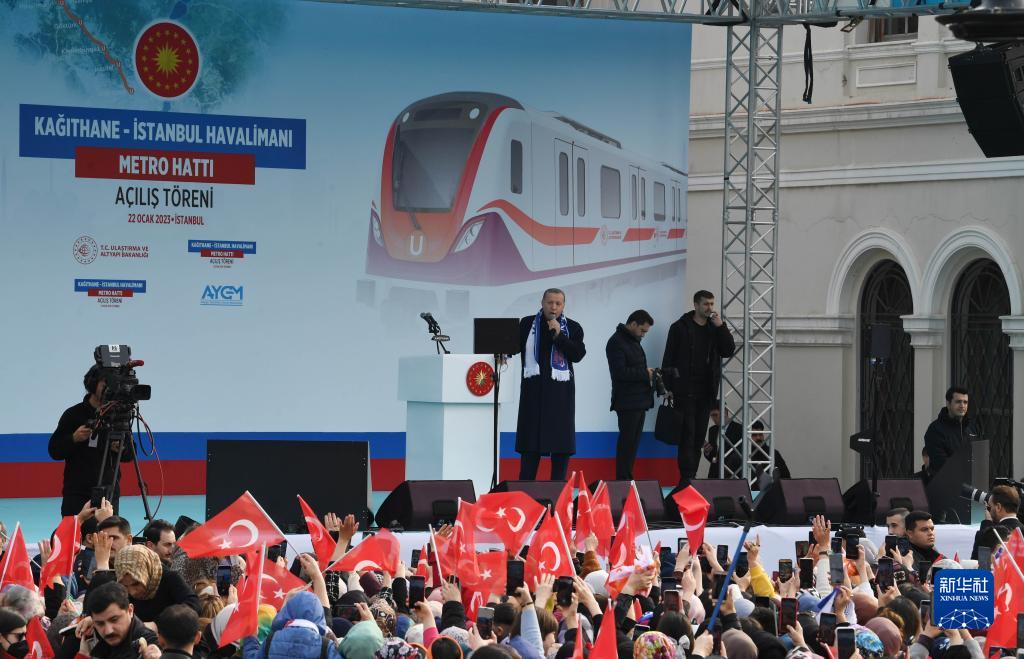 2023年1月22日,土耳其總統(tǒng)埃爾多安出席伊斯坦布爾新機場線開通儀式。(圖源:新華社)