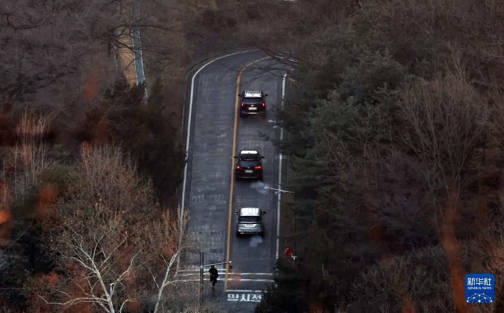 1月3日上午,韓國高級公職人員犯罪調查處工作人員乘坐的車輛駛向首爾龍山區(qū)漢南洞的總統(tǒng)官邸。新華社/紐西斯通訊社