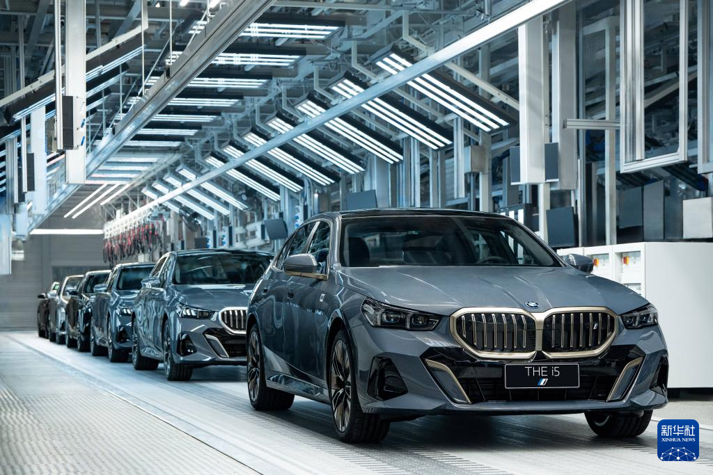 寶馬i5純電動汽車從位于遼寧的大東工廠下線(2024年1月8日攝)。新華社發(fā)(寶馬集團供圖)