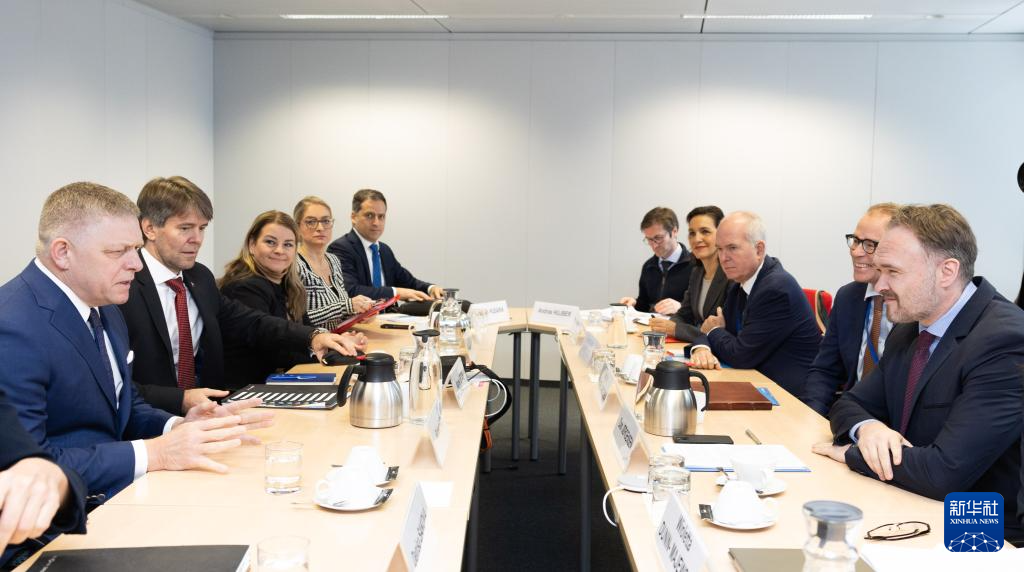 1月9日,在比利時(shí)布魯塞爾,斯洛伐克總理菲佐(左一)與歐盟能源專員丹·約根森(右一)舉行會(huì)談。新華社發(fā)(歐盟供圖)