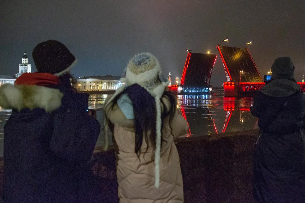 按照當(dāng)?shù)貍鹘y(tǒng),涅瓦河上的多座橋梁只在每年4月至11月通航季定時(shí)開合,以便大型船只通航?!斑@是圣彼得堡首次為外國(guó)節(jié)日開橋,特別獻(xiàn)給我們的中國(guó)朋友?!笔ケ说帽な袑?duì)外關(guān)系委員會(huì)主席格里戈里耶夫說。