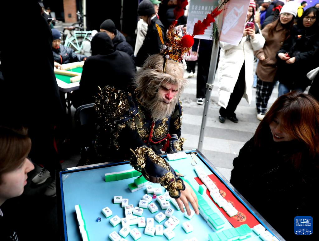 今年,倫敦卡姆登集市首次舉辦了中國(guó)春節(jié)慶典活動(dòng)。喜慶的春節(jié)燈飾高高懸掛,在微風(fēng)中輕輕搖曳;空氣中彌漫著中式點(diǎn)心的香氣,令人垂涎欲滴。人群中,偶爾可見(jiàn)漢服衣袂翩然掠過(guò),許多人手中還拿著紅色的燈籠和“福”字。在慶典活動(dòng)上,當(dāng)?shù)厥忻裾淠荨っ谞栁值乱贿吅爸芭觥?,一邊開(kāi)心地將麻將桌上的“南風(fēng)”牌收到面前。她不僅自己打得得心應(yīng)手,還不時(shí)給身邊的新手講解規(guī)則。