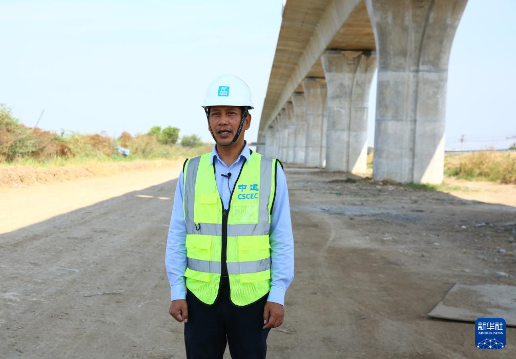 1月30日,在位于泰國(guó)中部大城府的中泰高鐵項(xiàng)目4-3標(biāo)段,泰籍員工杰占·賽深接受新華社記者采訪。新華社記者 孫瑋彤 攝