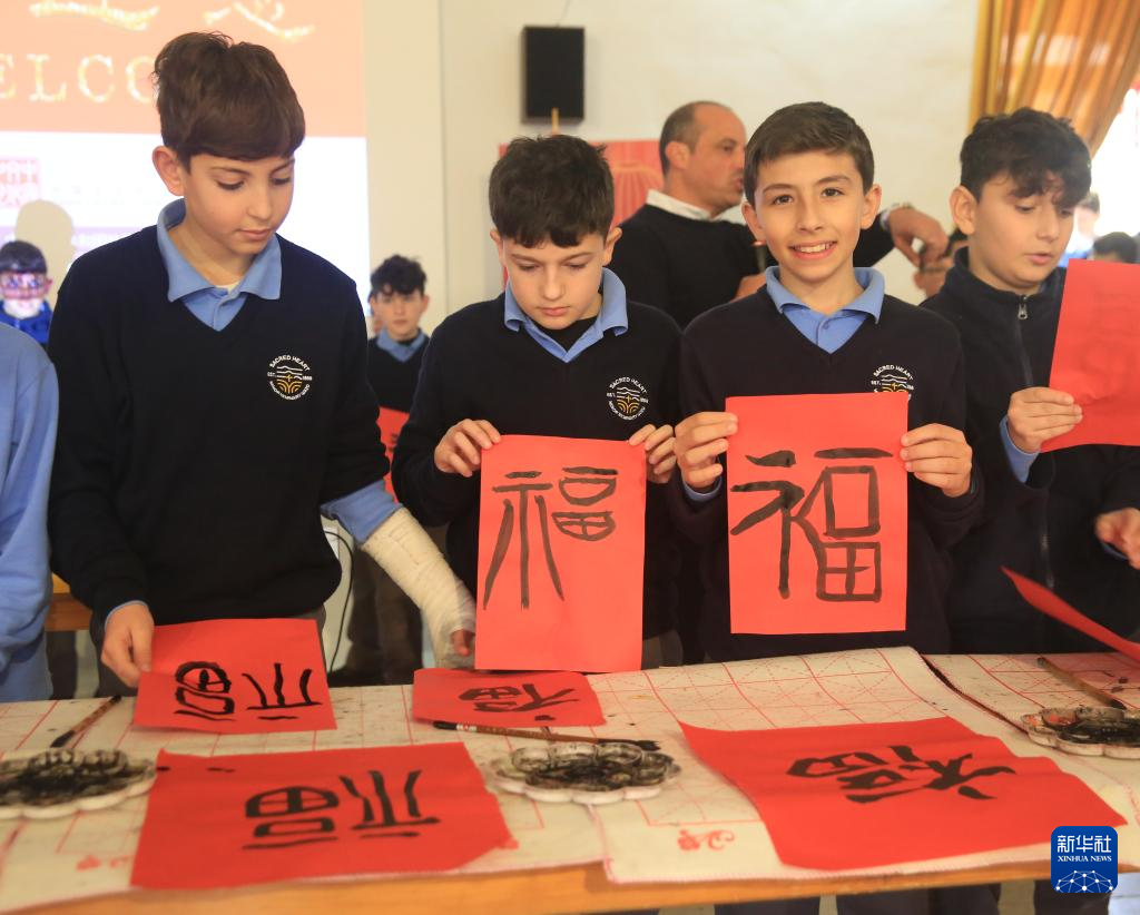 與此同時,在學(xué)校禮堂內(nèi),學(xué)生們正在熱火朝天地體驗(yàn)中國書法藝術(shù)的獨(dú)特魅力。馬耳他中國文化中心的工作人員為學(xué)生們講解中國文房四寶的歷史淵源,現(xiàn)場演示書法基本技法。隨后,學(xué)生們興致勃勃地練習(xí)書寫,感受中國書法的韻味,他們在宣紙上留下的墨跡勾勒出對東方文化的向往。當(dāng)一個個工整的“福”字、“春”字躍然紙上時,學(xué)生們興奮不已,互相欣賞彼此的作品。