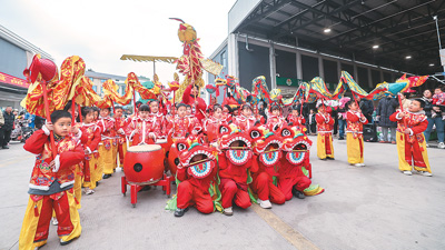 2月12日,在位于浙江杭州建德市更樓街道的建德新農(nóng)都農(nóng)產(chǎn)品批發(fā)市場(chǎng)內(nèi),一場(chǎng)特色元宵市集主題活動(dòng)助力消費(fèi)市場(chǎng)升溫。2025年1月正式投入使用的建德新農(nóng)都農(nóng)產(chǎn)品批發(fā)市場(chǎng)建筑面積8.29萬(wàn)平方米,集蔬菜、水果、肉類(lèi)、水產(chǎn)品等批發(fā)零售于一體,發(fā)揮保障商品供應(yīng)和穩(wěn)定區(qū)域物價(jià)作用。圖為元宵市集上,小朋友表演“萌娃舞龍”。