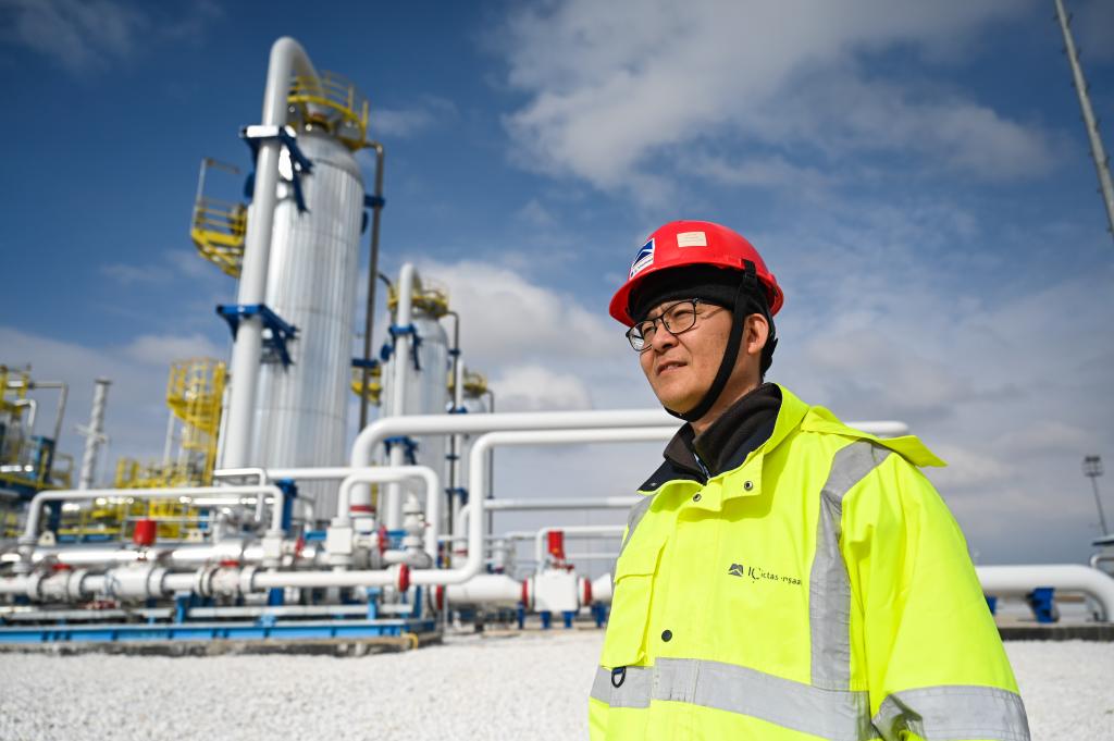 2月12日,一名中國工程師在土耳其阿克薩拉伊省的圖茲湖地下天然氣儲(chǔ)庫擴(kuò)建項(xiàng)目地面場(chǎng)站巡查。新華社記者劉磊攝