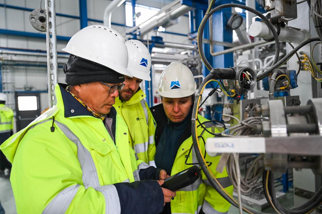 2月12日,中土兩國工程師在土耳其阿克薩拉伊省的圖茲湖地下天然氣儲(chǔ)庫擴(kuò)建項(xiàng)目地面場(chǎng)站查看設(shè)備。新華社記者劉磊攝