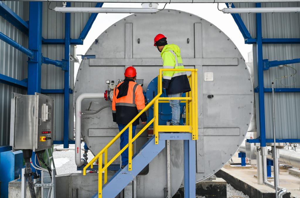 2月12日,中國工作人員在土耳其阿克薩拉伊省的圖茲湖地下天然氣儲(chǔ)庫擴(kuò)建項(xiàng)目地面場(chǎng)站查看設(shè)備。新華社記者劉磊攝