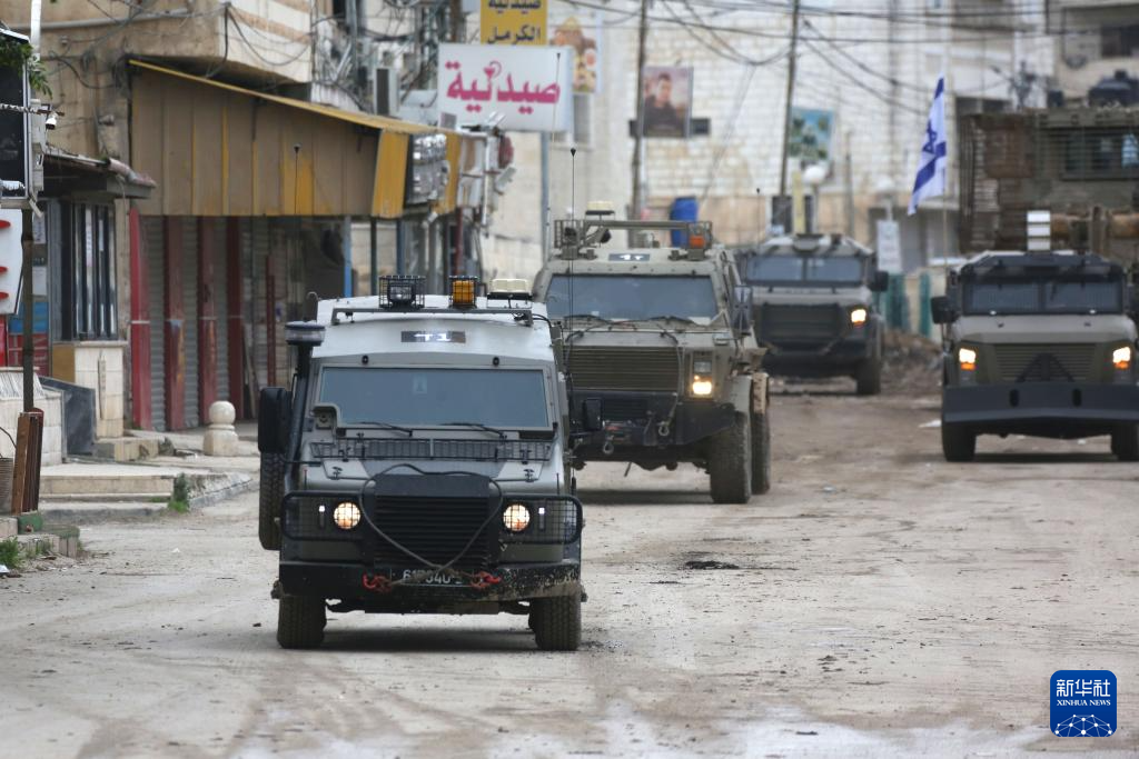 這是1月22日在約旦河西岸城市杰寧拍攝的以軍車輛。新華社發(fā)(尼達(dá)爾·艾仕塔耶?dāng)z)