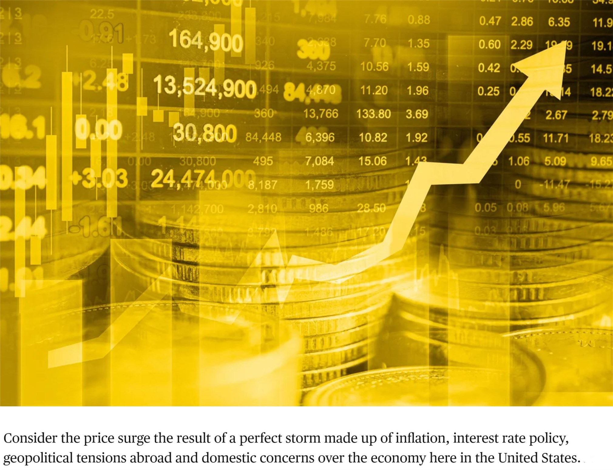 美國(guó)哥倫比亞廣播公司指出,作為全球儲(chǔ)備貨幣,美元信用與美國(guó)經(jīng)濟(jì)緊密相關(guān)。目前,通脹、利率政策、地緣政治緊張局勢(shì)和美國(guó)國(guó)內(nèi)對(duì)經(jīng)濟(jì)的擔(dān)憂已構(gòu)成一場(chǎng)“完美風(fēng)暴”,而黃金價(jià)格的飆升正是這場(chǎng)“風(fēng)暴”的產(chǎn)物。