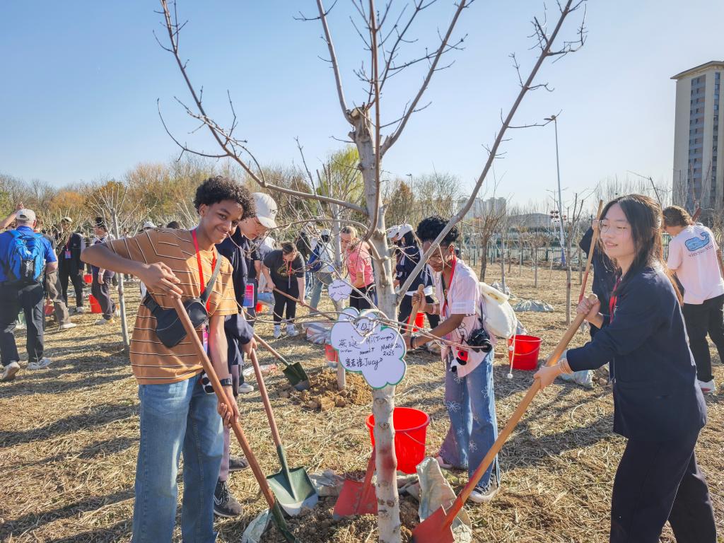 3月20日,春分,參訪的美國學(xué)生和中國同齡人,在河北省園博園的中美友誼傳承青年林,共植友誼樹。