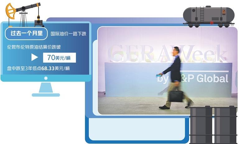 先看最近國(guó)際油價(jià)的走勢(shì)。一方面是油價(jià)隨著美國(guó)的關(guān)稅戰(zhàn)威脅而劇烈波動(dòng),并且跌到半年來(lái)的最低點(diǎn)。統(tǒng)計(jì)數(shù)據(jù)表明,在過(guò)去一個(gè)月里,國(guó)際油價(jià)一路下跌,倫敦布倫特原油期貨結(jié)算價(jià)跌破70美元/桶,盤中更是跌至3年低點(diǎn)68.33美元/桶。自特朗普就職以來(lái),國(guó)際油價(jià)每桶平均價(jià)格已經(jīng)下跌了10美元之多。