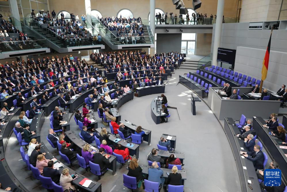 3月25日,在德國柏林,新一屆德國聯(lián)邦議院成立并召開首次全體會議。新華社記者 杜哲宇 攝