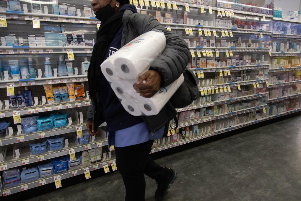3月28日,顧客在美國(guó)紐約市一家藥房購(gòu)買衛(wèi)生紙。新華社發(fā)(郭克攝)