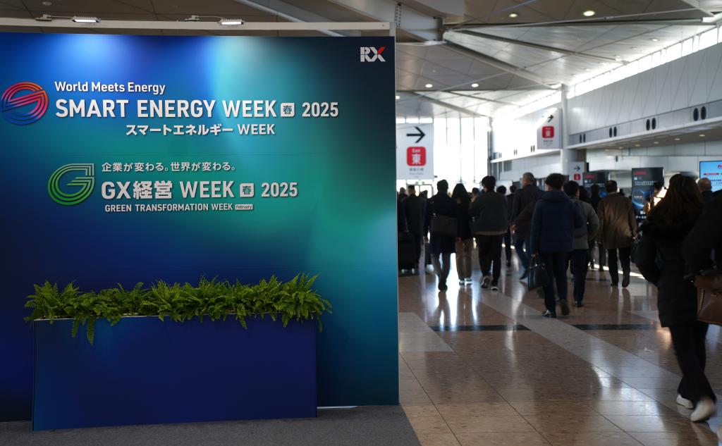 2月19日,在日本東京國際展覽中心,參觀者步入“智慧能源周”會場。新華社記者錢錚攝