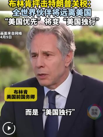 美國前國務(wù)卿布林肯日前接受媒體采訪時表示,美國現(xiàn)任政府對全球加征關(guān)稅,將動搖美國家信譽,導(dǎo)致“美國優(yōu)先”變成“美國獨行”。