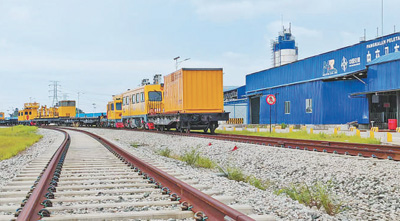 位于馬來西亞彭亨州關(guān)丹市的東海岸鐵路項目第十分部鋪軌基地?! ”緢笥浾?管克江攝