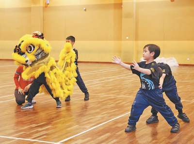 馬來西亞雪蘭莪州培才二校的學(xué)生在練習(xí)舞獅?! ”緢笥浾?楊 一攝