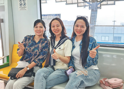 越南河內(nèi)市民點贊由中企承建的該國首條城市輕軌吉靈—河?xùn)|線。 本報記者 孫廣勇攝