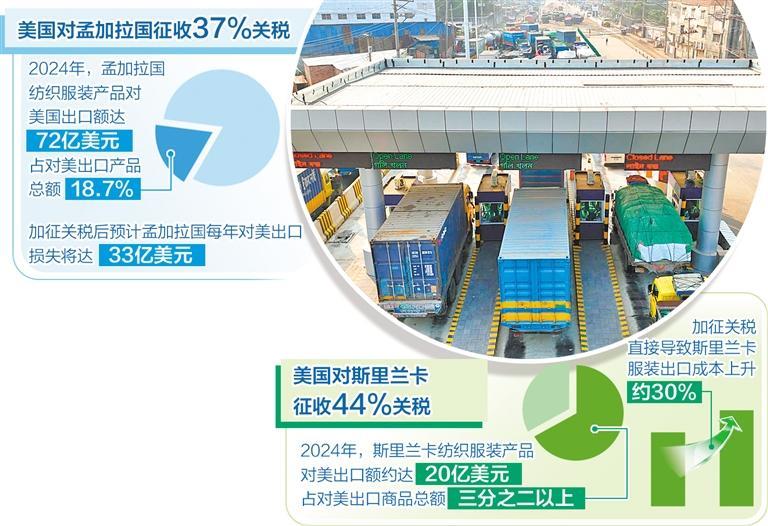 美國近期實(shí)施的所謂“對(duì)等關(guān)稅”將南亞7國中的4個(gè)國家納入制裁范圍。其中,美國對(duì)孟加拉國產(chǎn)品征收37%的關(guān)稅,對(duì)斯里蘭卡產(chǎn)品征收的關(guān)稅稅率更是提高至44%。孟加拉國目前仍是聯(lián)合國認(rèn)定的最不發(fā)達(dá)國家之一,經(jīng)濟(jì)發(fā)展水平相對(duì)較低;斯里蘭卡在2022年因經(jīng)濟(jì)危機(jī)宣布破產(chǎn),目前正處于經(jīng)濟(jì)復(fù)蘇的關(guān)鍵時(shí)期。美國的關(guān)稅霸凌政策讓兩個(gè)相對(duì)脆弱的南亞中小國家貿(mào)易環(huán)境更加惡化,經(jīng)濟(jì)發(fā)展面臨嚴(yán)峻挑戰(zhàn)。
