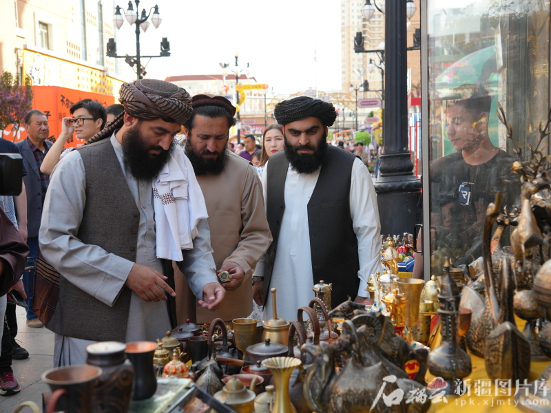 訪華團(tuán)漫步在新疆國際大巴扎。石榴云/新疆日報記者 閆嘯天攝