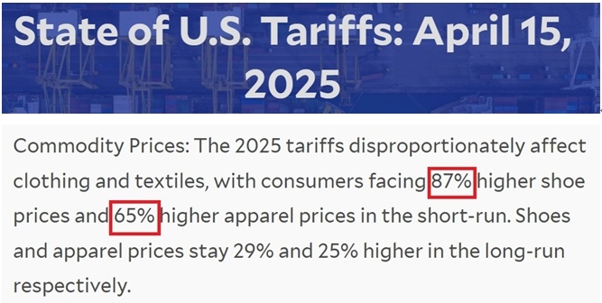 耶魯大學預算實驗室預測,未來一年,美國服裝價格可能上漲65%,鞋類價格漲幅可能高達87%。