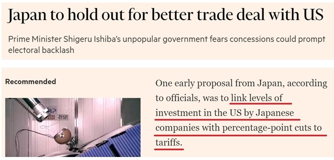 另據(jù)報道,考慮到日本是美國最大海外投資來源國,日方除考慮進一步對美開放市場等讓步條件外,早期談判方案中還包括將美國對日商品關(guān)稅減免的百分點與日本企業(yè)在美投資水平掛鉤。