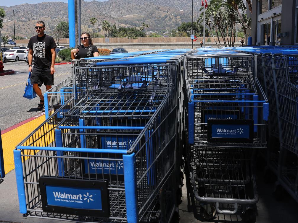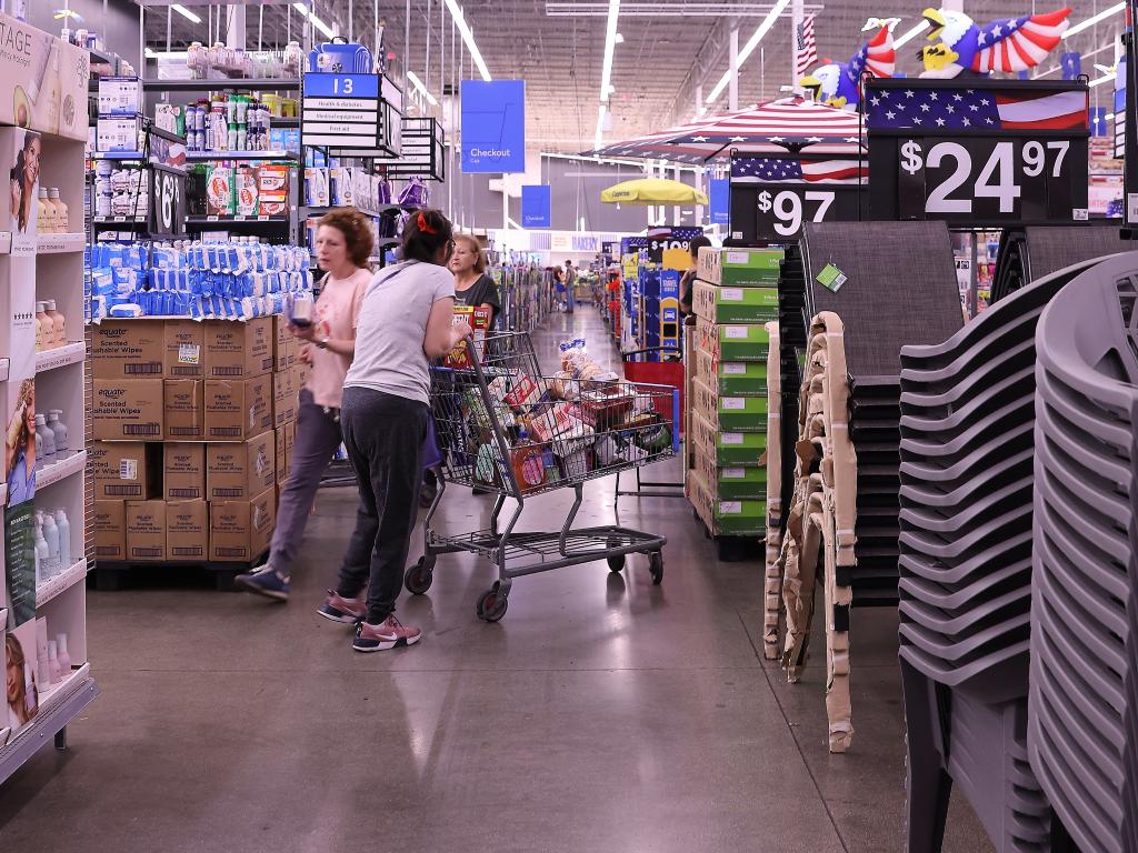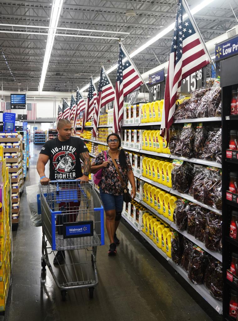 5月20日,顧客在美國加利福尼亞州洛杉磯縣一家沃爾瑪商店內采購商品。新華社發(fā)(邱晨攝)
