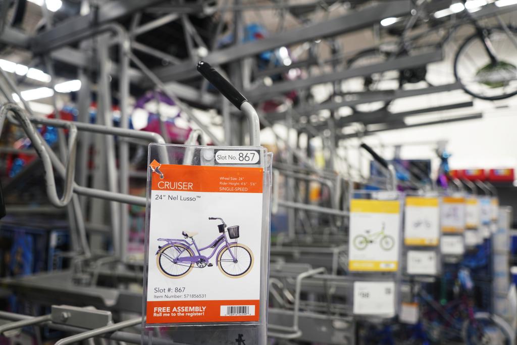 除了價格上漲,這家門店的部分玩具、自行車和家用電器貨架空空蕩蕩,只剩還沒有撤下的價簽。