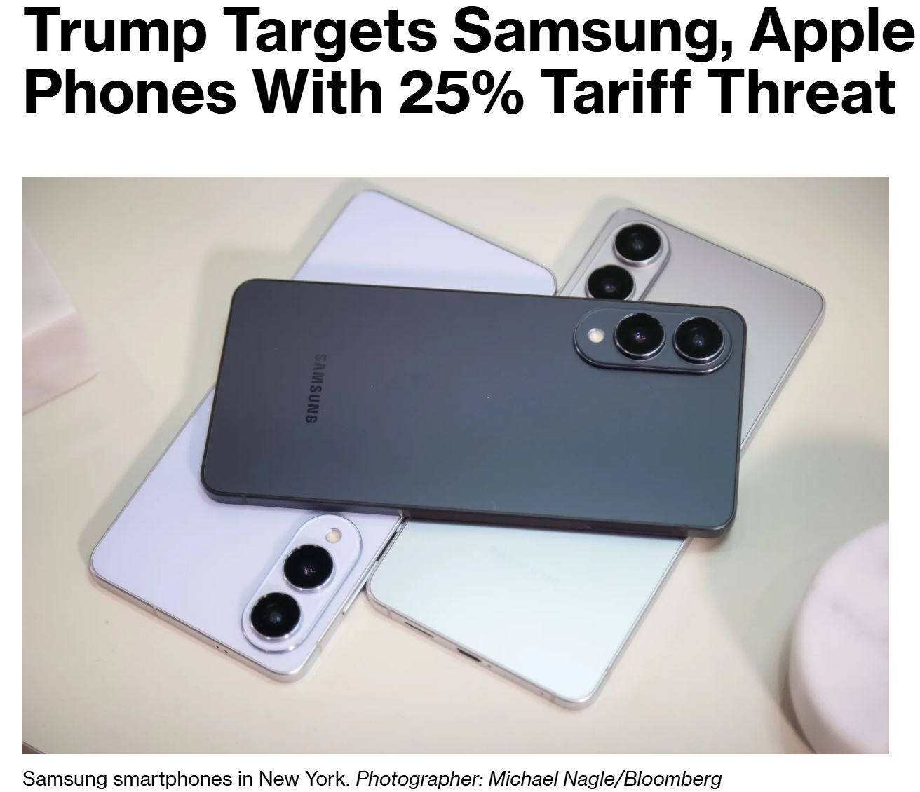 同樣是在23日,特朗普還威脅說,凡是在國外制造并在美國銷售的蘋果手機(jī),都應(yīng)該被征收至少25%的關(guān)稅。韓國三星電子公司和其他生產(chǎn)手機(jī)的企業(yè)也將面臨美國的關(guān)稅。相關(guān)政策預(yù)計(jì)從6月底開始實(shí)施。