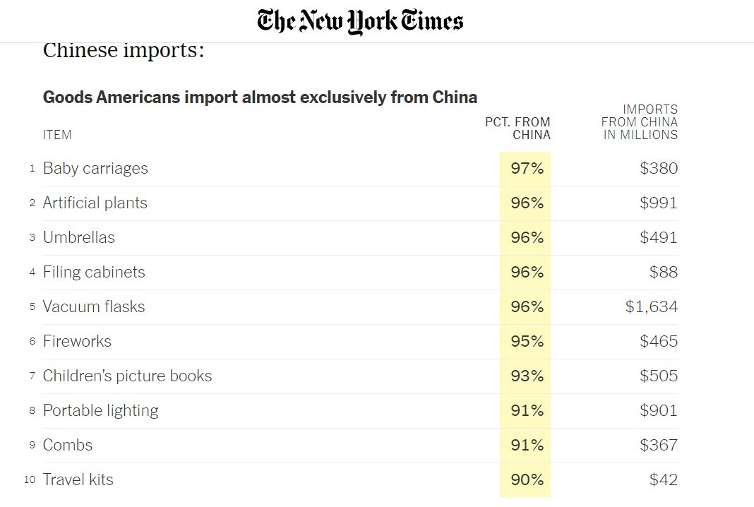 美國政府的關稅政策沖擊著美國社會的方方面面,近日,《紐約時報》發(fā)表的一篇文章以梳理清單的方式,展現(xiàn)了普通美國人生活中的“中國制造”,以及關稅可能對他們生活產生的影響。