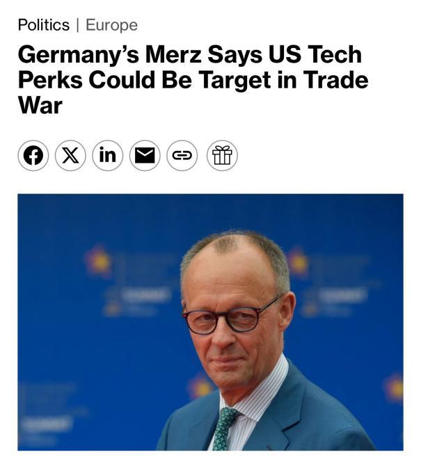 德國總理默茨:“目前,美國科技公司在歐盟受到‘大力保護(hù)’,包括在稅收方面,而這種情況可以改變。我并不想讓對抗升級,而是希望共同解決這個問題。在歐盟看來,貿(mào)易戰(zhàn)沒有贏家。(可是)在美國看來,關(guān)稅能夠單方面保護(hù)美國經(jīng)濟(jì),也是一種‘零和游戲’,即當(dāng)歐盟經(jīng)濟(jì)變得更糟糕時對美國有利。”