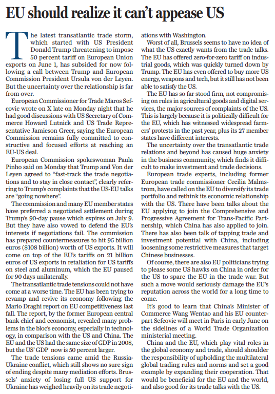 原標題:EU should realize it can't appease US